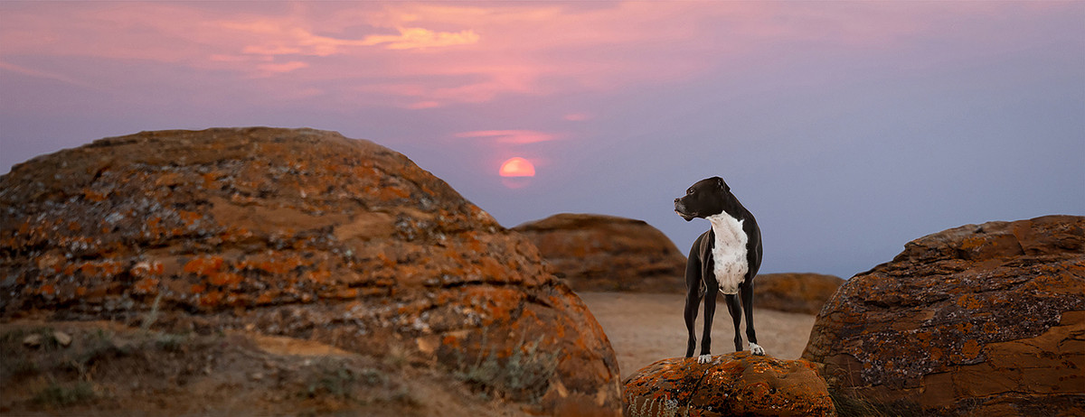 Stanley on the red rocks is one I keep coming back to. The year before, I had entered this version below into a photography challenge of that same location, midday light, same dog, same location. The feedback was simple: go at sunset.
